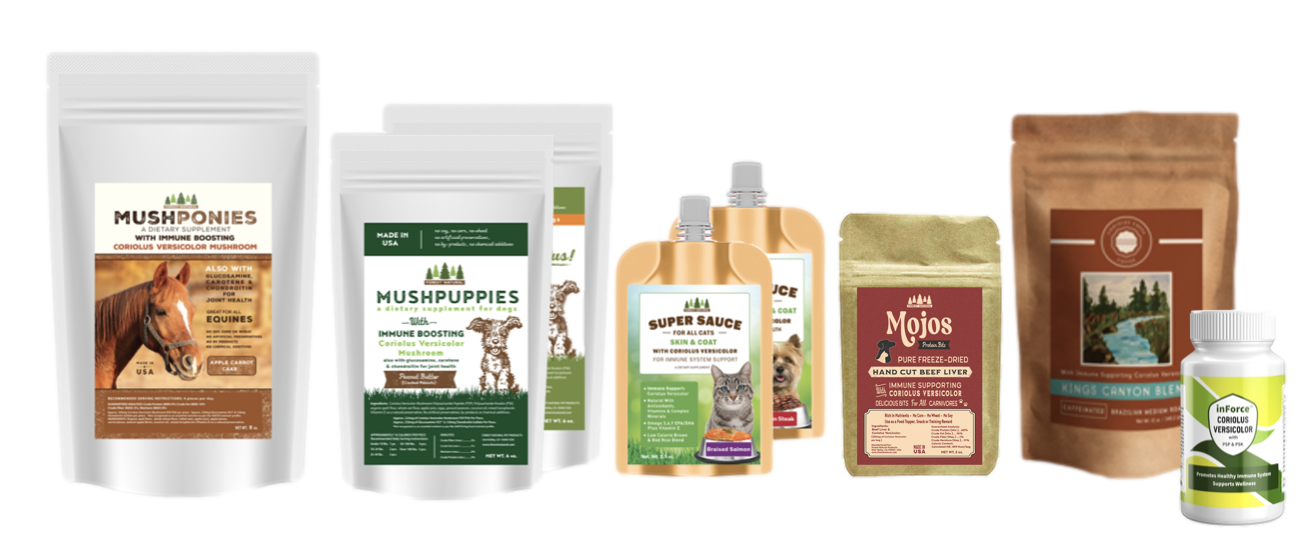 The most potent strain of immune supporting Coriolus Versicolor available for Dogs, Cats, Horses, and Humans!
